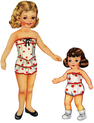 This was a water damaged set. I have digitally cleaned and brightened it as best I could. Little Alice even has a doll of her own with a unique wardrobe.